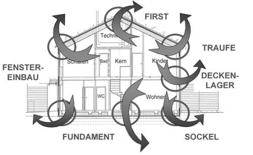 Wärme sucht sich ihren Weg vom beheizten Raum nach außen. Dabei geht sie den Weg des geringsten Widerstandes1).