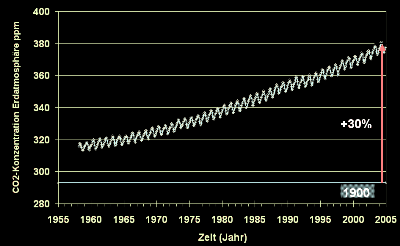 an CO2 von 293 auf 380 ppm, also um 30%, zugenommen. Das
